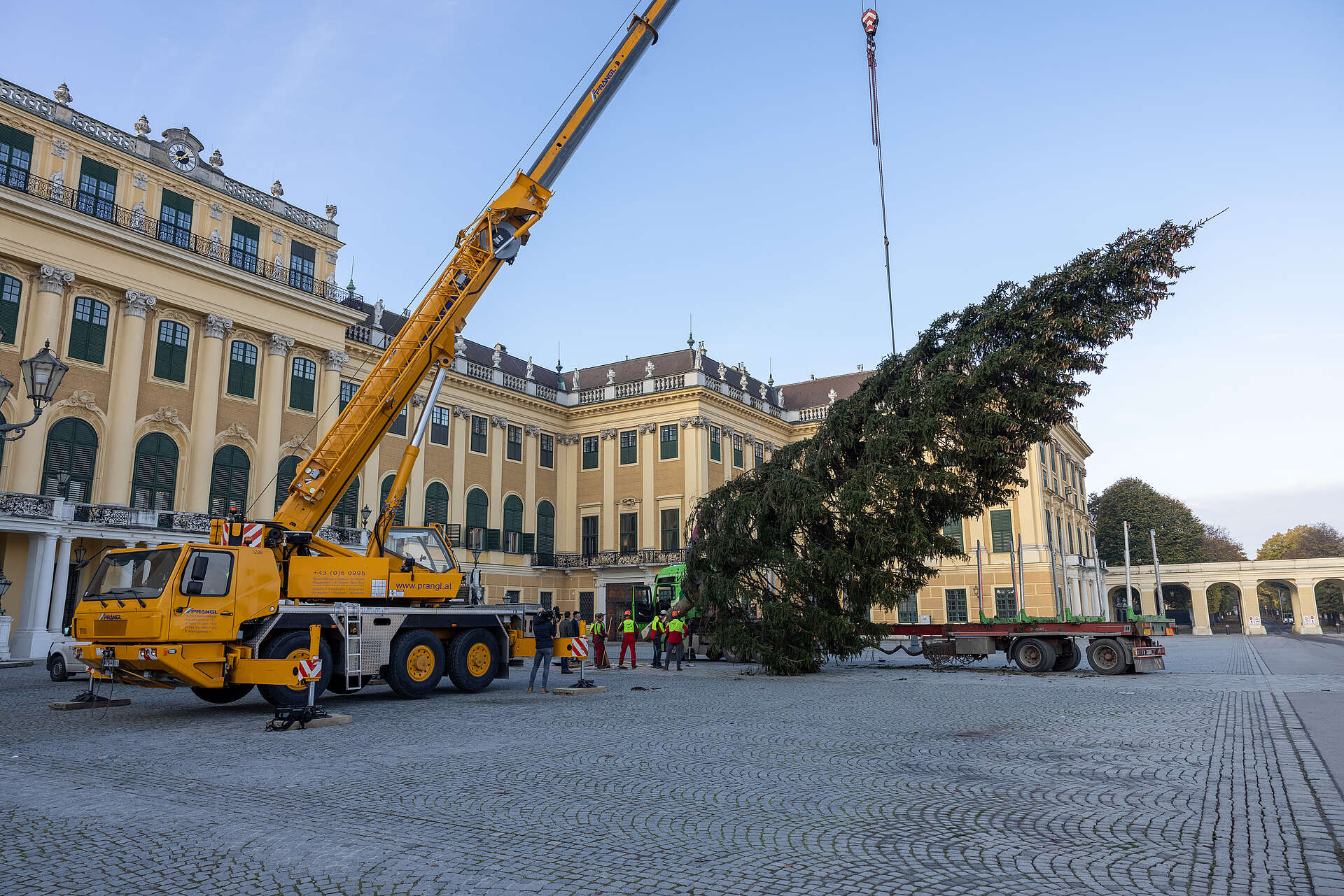 Als unverkennbares Symbol für die nahende Adventzeit traf am Mittwoch, 2. November der Christbaum für den Kultur- & Weihnachtsmarkt und Neujahrsmarkt Schloss Schönbrunn in den frühen Morgenstunden in Wien ein.