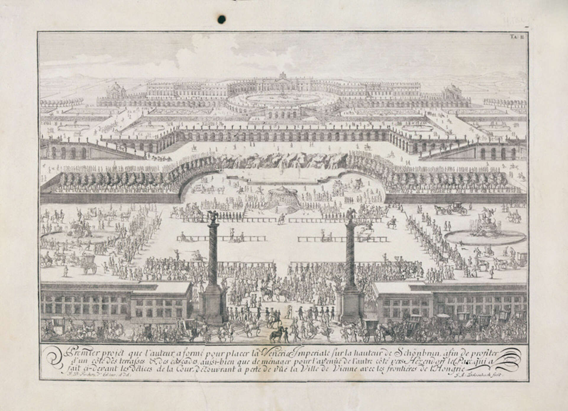 Von den mit der zweiten Türkenbelagerung einhergehenden Verwüstungen im Jahre 1683 blieb auch Schönbrunn mit Lusthaus und Tiergarten nicht verschont. Kaiser Leopold I., in dessen Besitz sich das Schloss seit 1686 befand, fasste den Entschluss, Schönbrunn dem Thronfolger Joseph zu überlassen und für diesen einen repräsentativen Neubau zu errichten. Als bald darauf durch adelige Vermittlung der in Rom ausgebildete Architekt Johann Bernhard Fischer von Erlach an den kaiserlichen Hof kam, legte dieser 1688 dem Kaiser den sogenannten „Schönbrunn I-Entwurf“ vor, mit dem er sein architektonisches Können unter Beweis stellen und damit das kaiserliche Interesse gewinnen wollte. Fischer wurde daraufhin 1689 zum Architekturlehrer des Thronfolgers ernannt und reüssierte in der Folge zum meist beschäftigten Architekten des Hofes und des Adels.