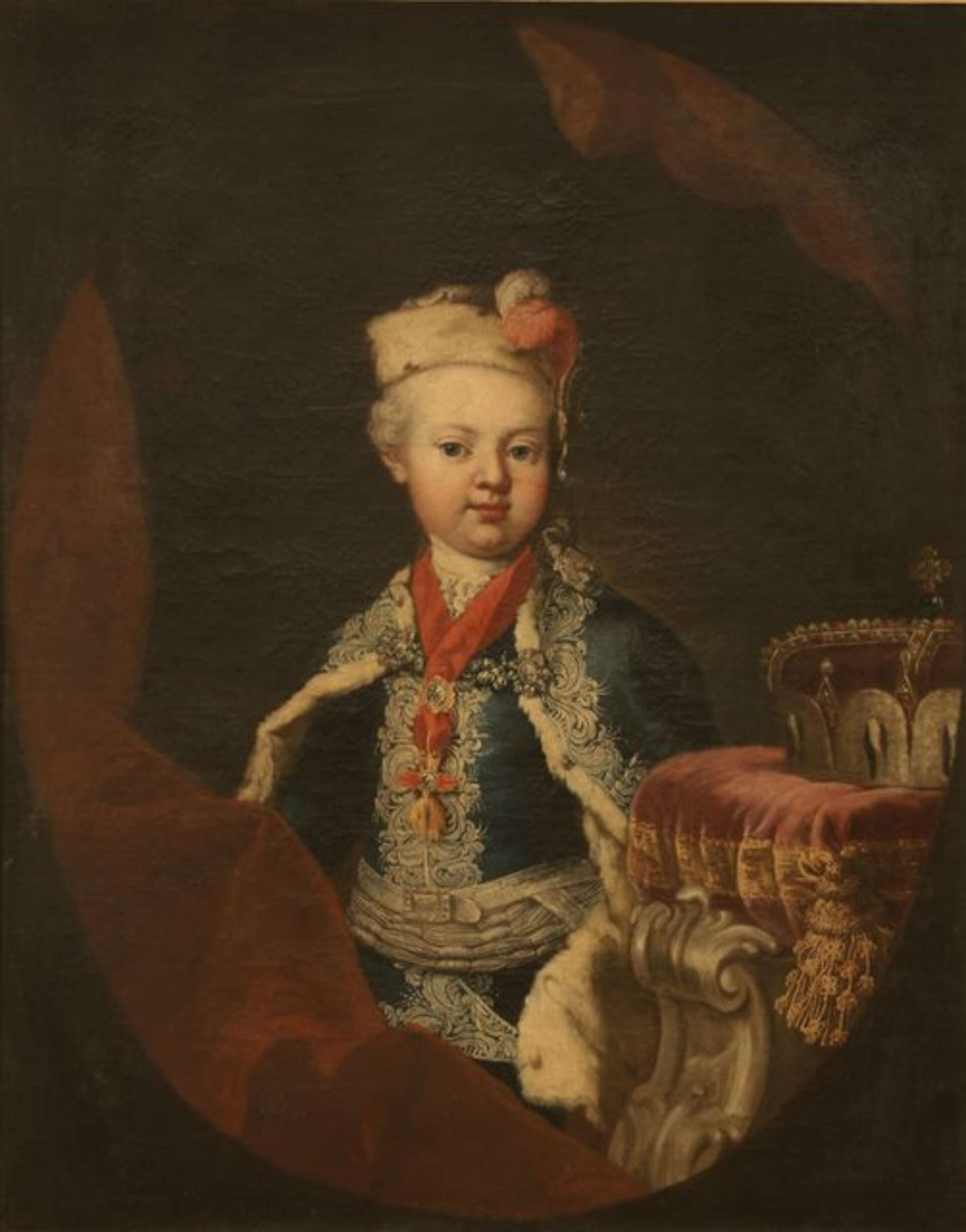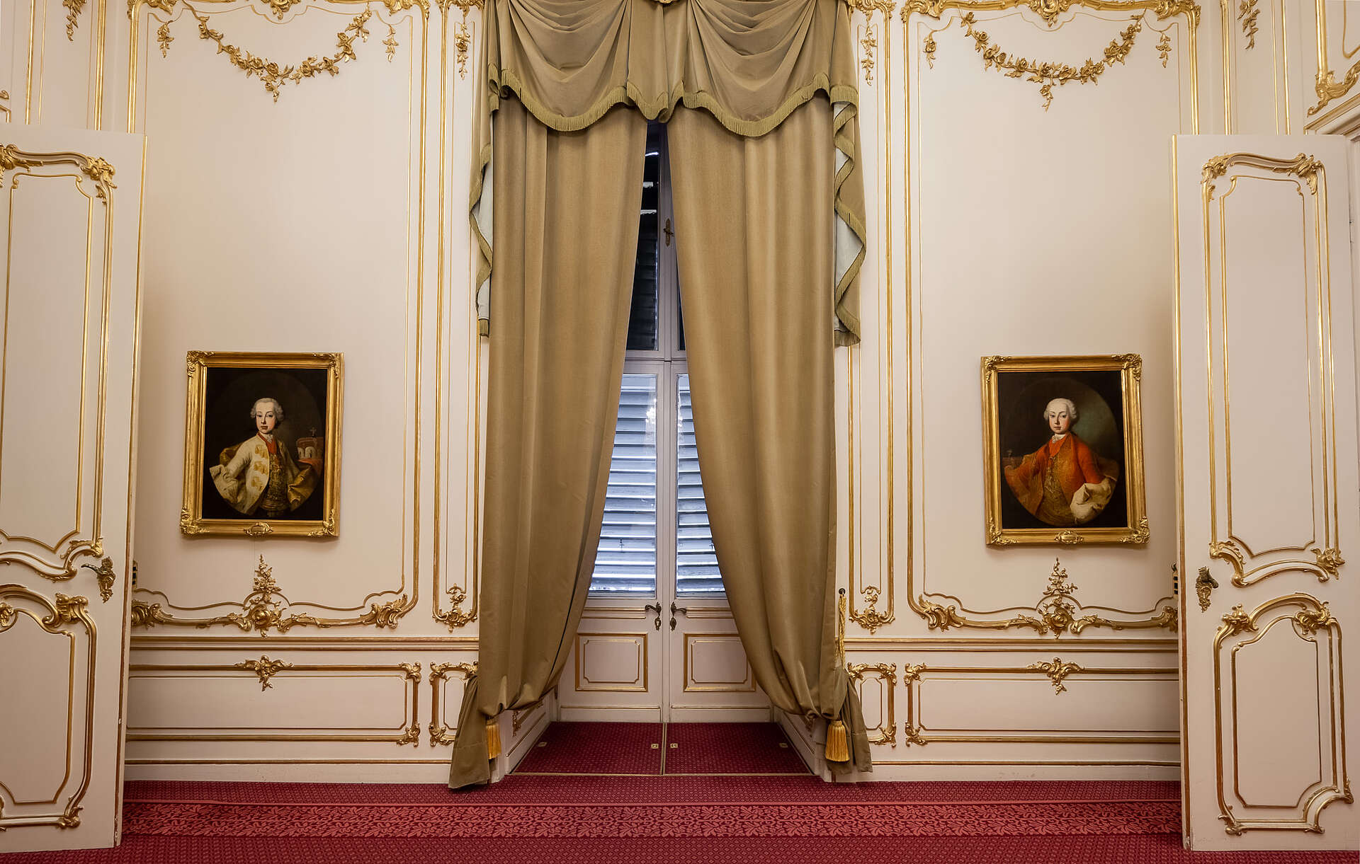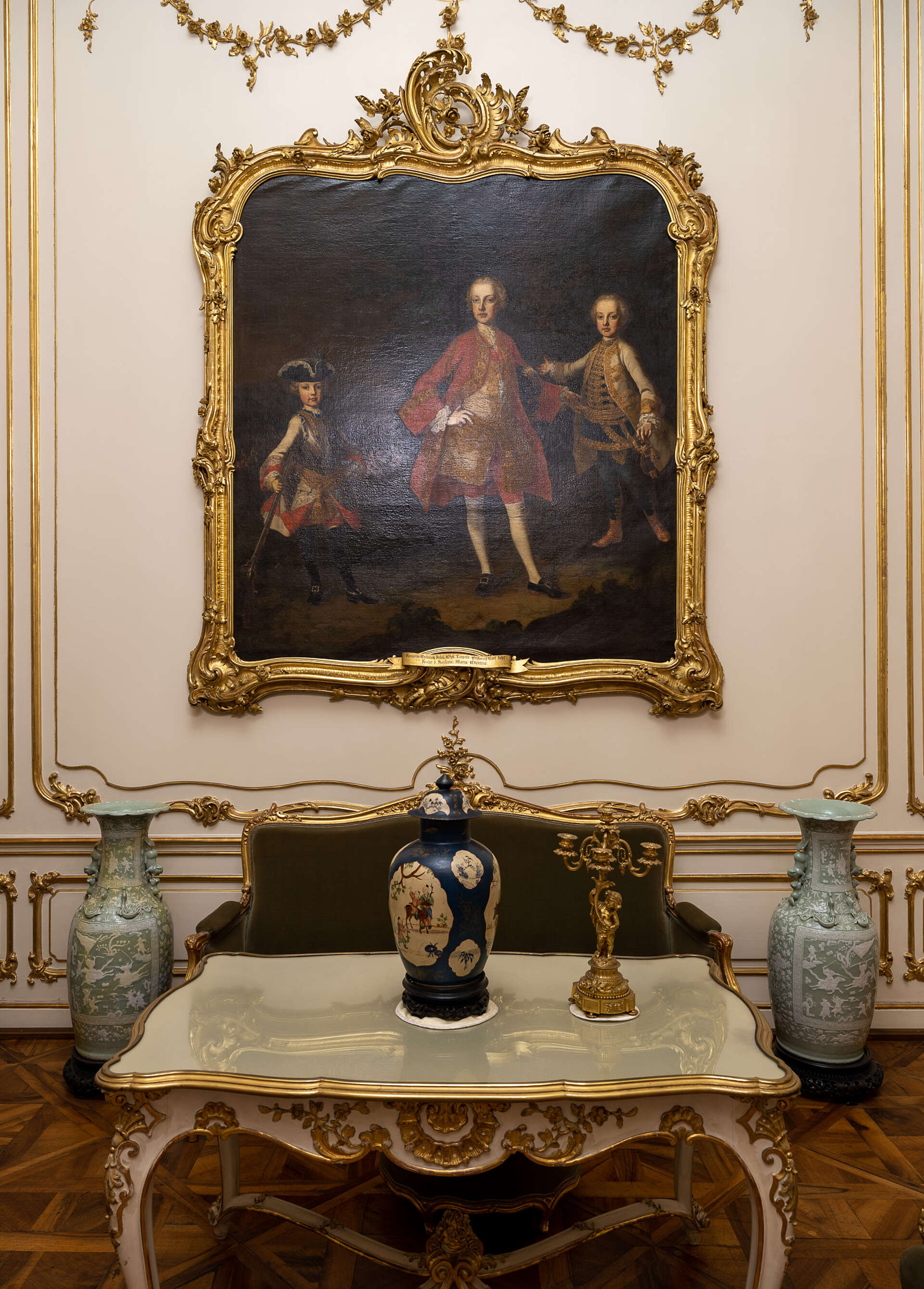 An der Stirnwand des Raumes ist ein Gruppenporträt der drei älteren Söhne aus der Ehe zwischen Maria Theresia und Franz Stephan von Lothringen zu sehen. Es zeigt den ältesten Sohn und Kronprinzen Joseph (1741–1790) mit seinen Brüdern Karl Joseph (1745–1761) und Peter Leopold (1747–1792).