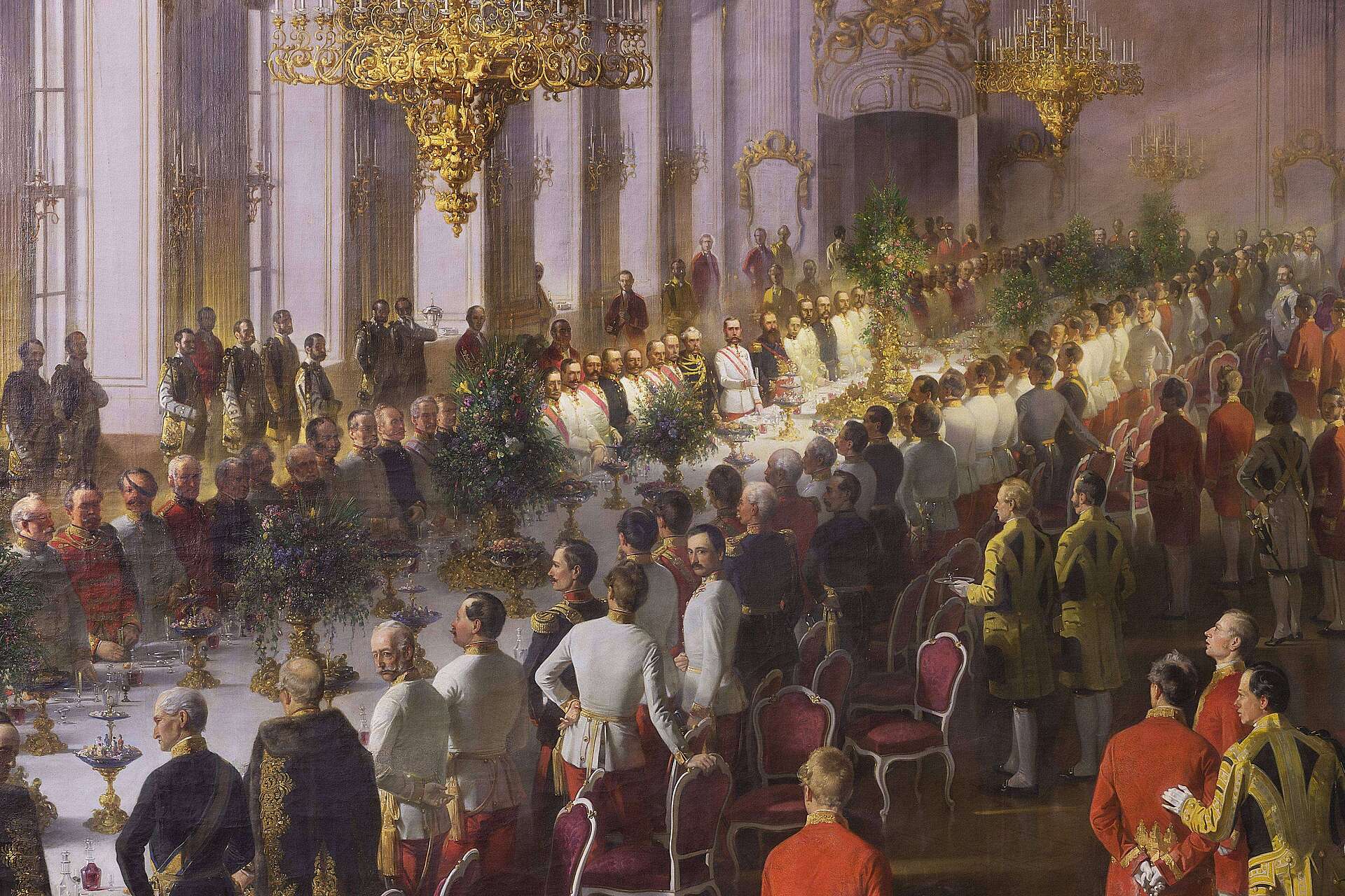 Der Kaiser gab damals ein prunkvolles Diner im Festsaal von Schloss Schönbrunn, der Großen Galerie, an dem die Ordensträger sowie die männlichen Mitglieder der Dynastie, die Minister und die Generalität teilnahmen. Für Offiziere und Gemeine, die als Repräsentanten der einzelnen Regimenter eingeladen waren, wurden Tafeln im Schlosspark aufgestellt.