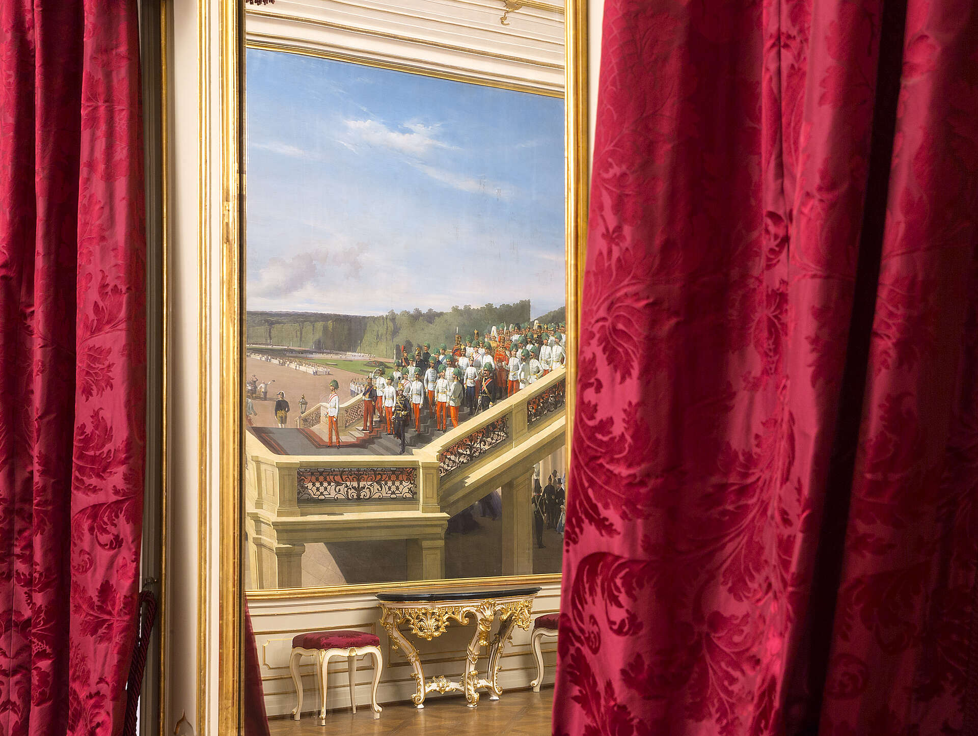 Franz Joseph ließ diese Gemälde bewusst hier anbringen, um seine Nähe zur Armee zu demonstrieren. Er trat in der Öffentlichkeit, aber auch im Alltag zumeist in militärischer Uniform auf.