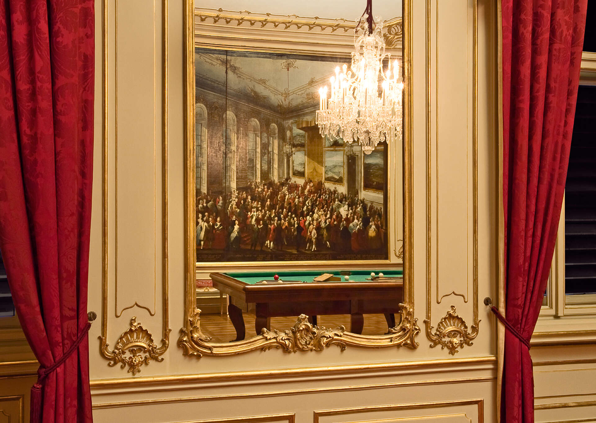 Bei abendlichen Zusammenkünften trafen hier die Herren zusammen, wobei der Billardtisch, der in der Mitte des Raumes aufgestellt ist, Unterhaltung bot.