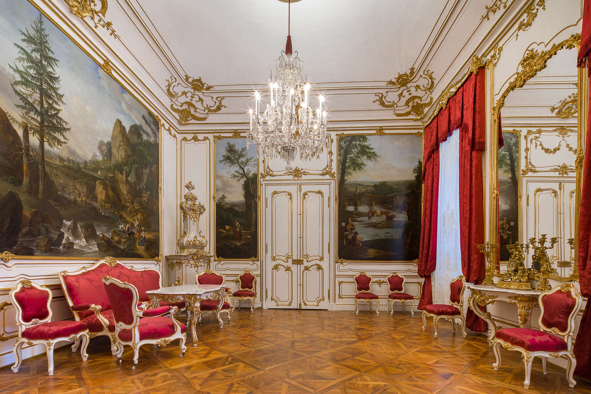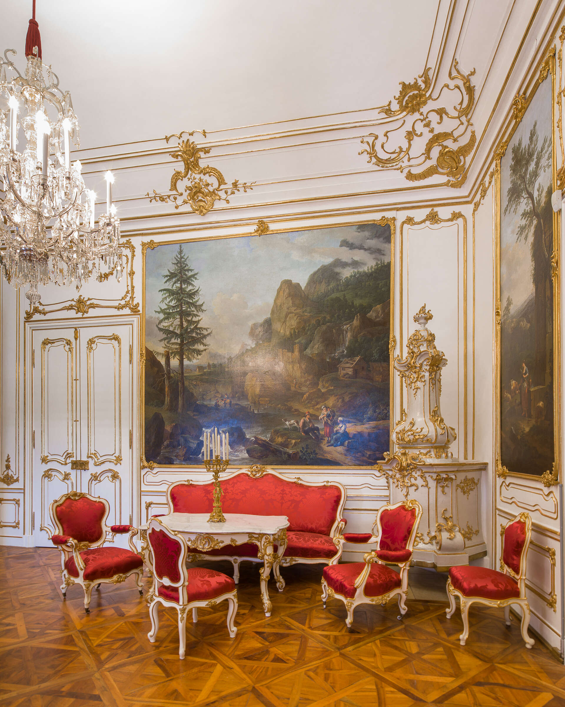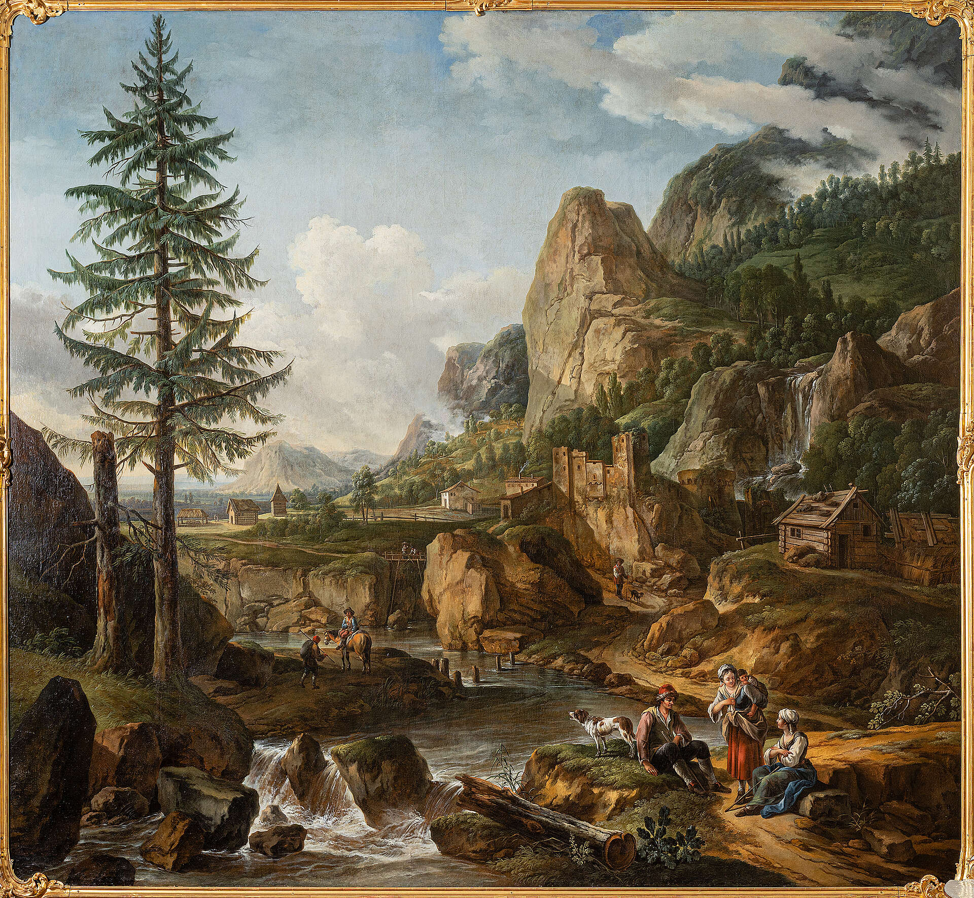 Die Gemälde von Joseph Rosa zeigen idealisierte Szenerien aus Italien und den Alpenländern.