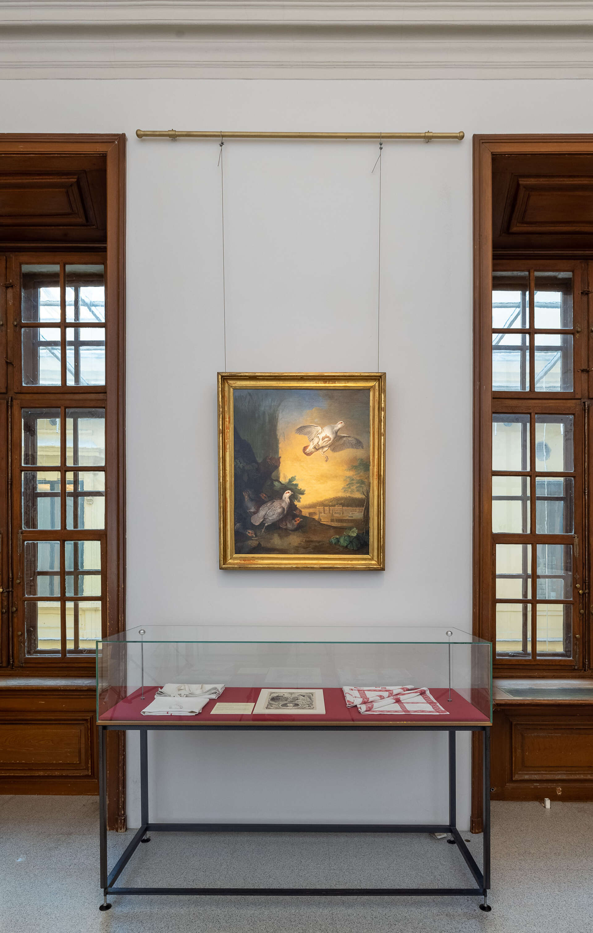 Auf dem zwischen den Fenstern dieses Raumes angebrachten Tierbild "Rebhühner vor Schönbrunn" von Johann Georg Hamilton ist im Hintergrund das Schloss abgebildet. Diese Darstellung zeigt das Jagdschloss Josephs I. nach seiner Errichtung in dem Zustand, wie es vor dem großartigen Ausbau unter Maria Theresia ausgesehen hat.
