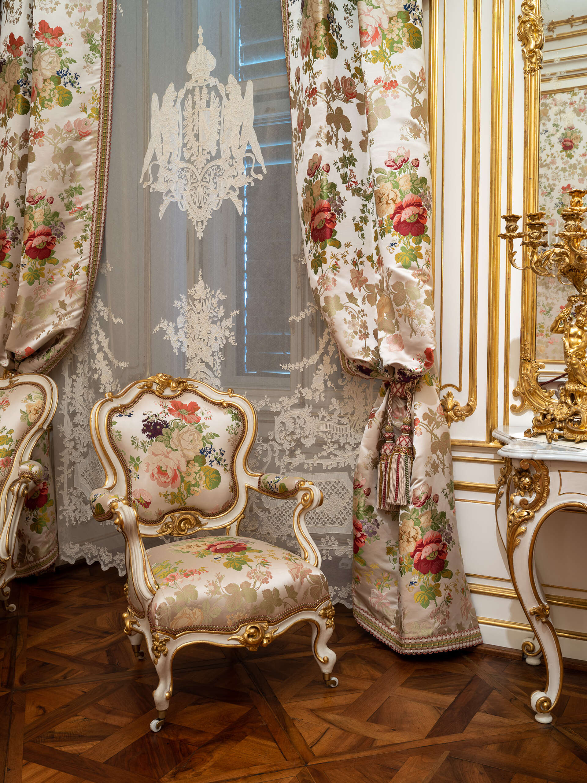 Nicht nur die beeindruckende textile Ausstattung ist hier bemerkenswert, sondern auch die laut den Inventarien erstaunlich umfangreiche Möblierung, die die zeremonielle Bedeutung widerspiegelt.