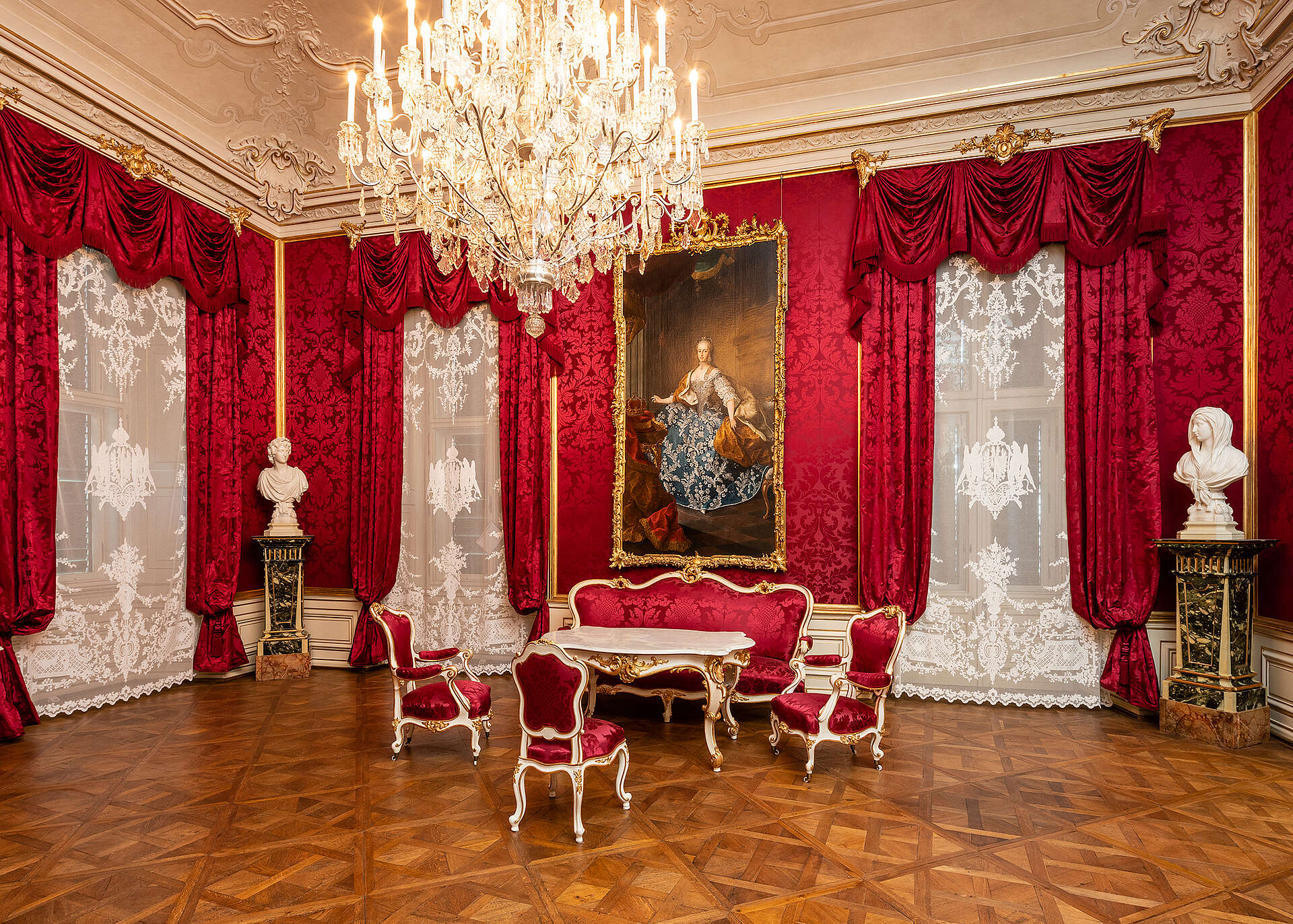 Dieser Salon sowie das benachbarte Schreibzimmer gehörten zum Appartement von Erzherzog Franz Karl, der diese Räume von 1835 bis zu seinem Tod 1878 bewohnte.